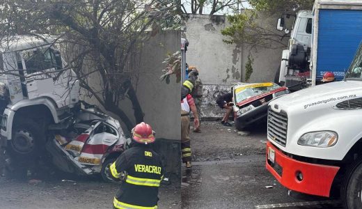 Autobús a exceso de velocidad se impacta contra barda y camioneta
