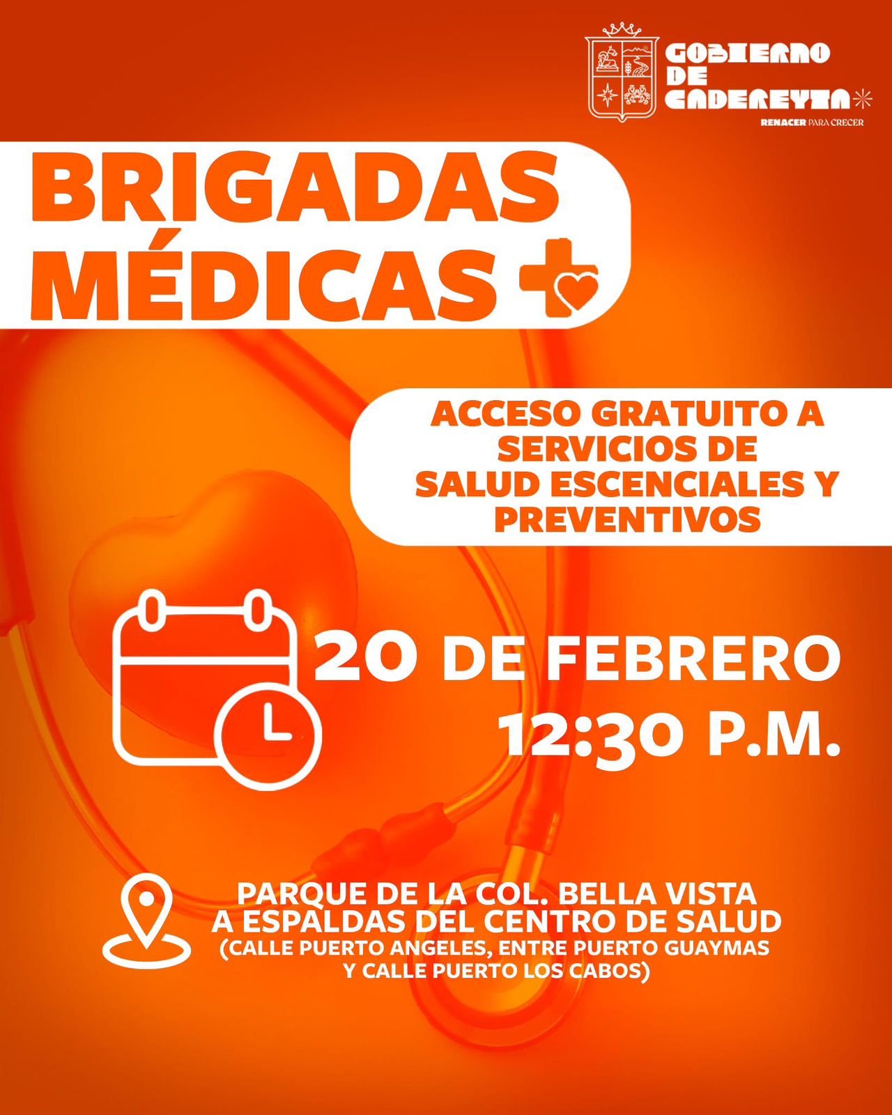 Cadereyta N.L.- El Gobierno de Cadereyta, encabezado por el alcalde Carlos Rodríguez “El Cuate”, invita a la comunidad a participar en las Brigadas Médicas que se llevarán a cabo el 20 de febrero. Se contará con vacunación contra el sarampión en el Parque de la Col. Bella Vista, ubicado a espaldas del Centro de Salud, a partir de las 12:30 p.m.