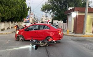 Al parecer, la motocicleta impactó al vehículo por un costado en el cruce. Las autoridades y servicios de emergencia van en camino para determinar las causas del accidente y atender al lesionado. Se recomienda a los conductores tomar precauciones y evitar la zona.