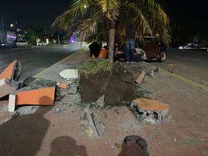 Cadereyta N.L.- Un accidente se suscitó hace unos momentos sobre la calle Vicente Guerrero, a la altura de la Cruz Verde, en Cadereyta. Según informes preliminares, un vehículo Volkswagen, conocido como “vocho”, perdió el control y se subió al camellón, impactando contra una de las columnas que se encuentran en el lugar.