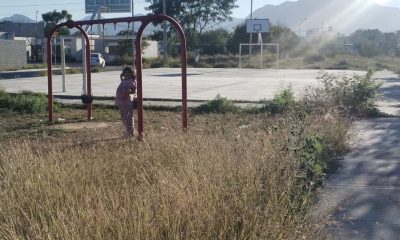 Juárez, N.L.- Una plaza de la colonia Santa Julia, en este municipio, luce en total abandono, ya que presenta la hierba crecida de hace un...