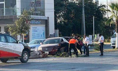 Cadereyta N.L.- La mañana de este domingo, un vehículo de color guinda se vio involucrado en un accidente en la calle 20 de Noviembre, antes de...