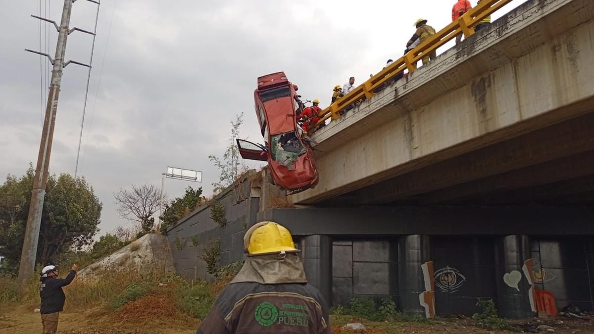 La tarde de este lunes ocurrió un fuerte accidente que provocó la volcadura de un auto, que estuvo a punto de caer del puente del Periférico Ecológico de Puebla. Elementos de Protección Civil acudieron de inmediato para el rescate y extracción de una familia que quedó atrapada al interior de la unidad, sostenida por la valla de contención metálica Lamentablemente se confirmó que una persona al interior ya no tendría signos vitales. Hasta el momento se desconocen las causas del accidente