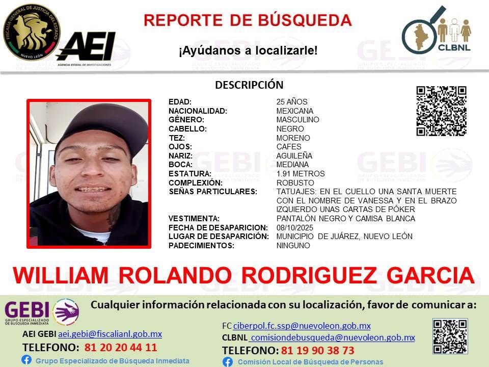 Reportes de búsqueda AYUDANOS A LOCALIZAR A WILLIAM ROLANDO RODRIGUEZ GARCIA Publicada hace 3 horas el 15 octubre, 2025 Por Staff2 Facebook Twitter Email Temas relacionados: Te podría gustar