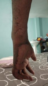 Cadereyta, N.L.- Un llamado desesperado hace Margarito García Gil, de 69 años, quien se encuentra en una situación crítica después de sufrir un accidente con un pulidor que le dejó incapacitada la mano izquierda.