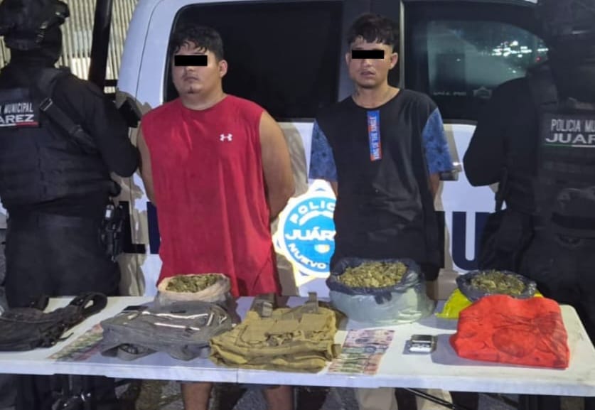 Se descubrió que ambos varones llevaban consigo bolsas con la hi3rba prohibida, chalecos tácticos, básculas digitales y dinero en efectivo.
