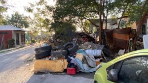 Calle llena de desechos olvidada por el Municipio de Juárez