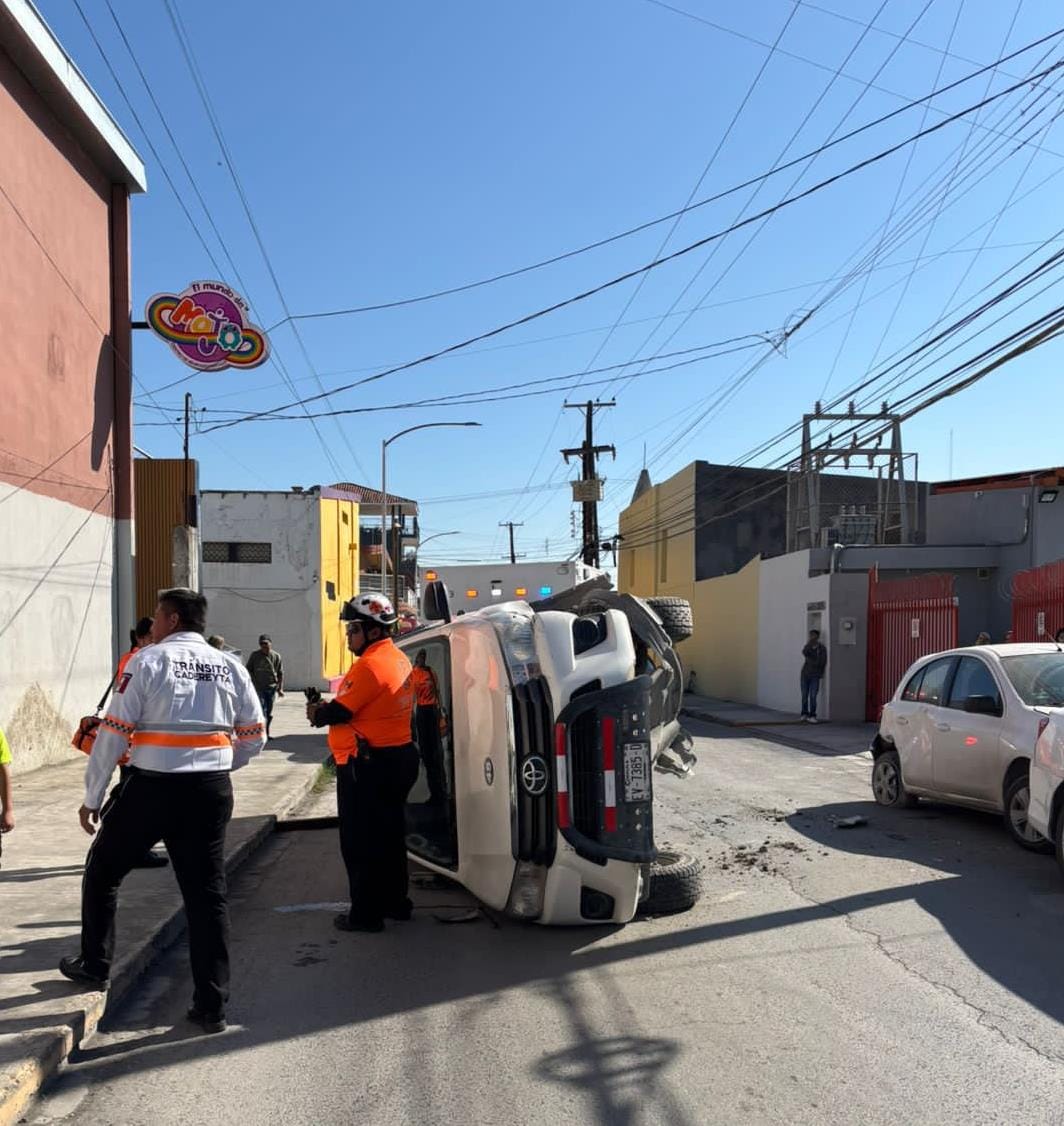 Según informes, la camioneta impactó a los vehículos estacionados y posteriormente volcó, dejando daños materiales. No se reportaron lesionados graves.