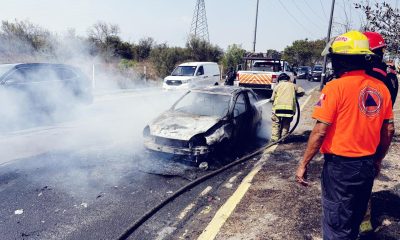 Juárez, N.L.- Este fin de semana, un auto fue consumido por las llamas en la avenida Eloy Cavazos, muy cerca del fraccionamiento San Francisco. Bomberos y...