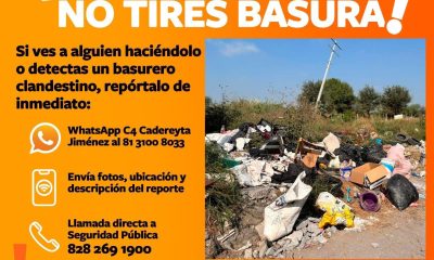 Cadereyta N.L.- Tirar basura en terrenos baldíos afecta la salud, provoca plagas, malos olores y daña la imagen de nuestro municipio. Además, hay fuertes sanciones...
