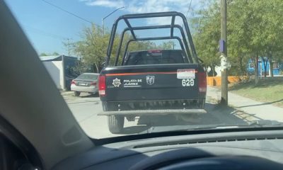 Juárez, N.L.- La unidad de Seguridad Pública de Juárez, cuyos tripulantes detuvieron al reportero del periódico La Última Palabra, se encontraba sin placas como lo muestra...