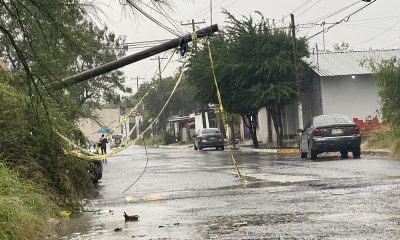 Juárez, N.L.- Un poste roto, suspendido por los cables y a punto de caer, se encuentra después de una semana en el fraccionamiento San Antonio. Ubicado...