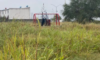Juárez, N.L.- La hierba crecida cubre lo que un día fueron andadores para los vecinos y las banquetas. La plaza luce también cubierta de maleza...