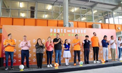 Cadereyta N.L.- El alcalde Carlos Rodríguez “El Cuate” y el gobernador Samuel García Sepúlveda inauguraron la nueva cancha de fútbol en la Secundaria No.1 Emilio...