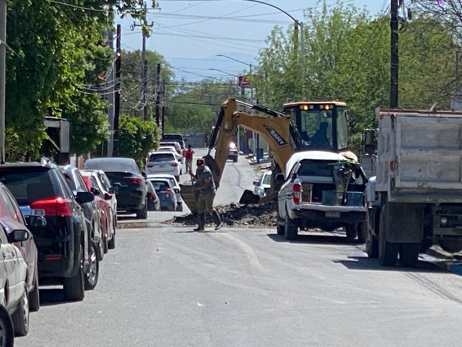 Cierran calle Pino Suárez en el centro de Cadereyta por trabajos de agua y drenaje
