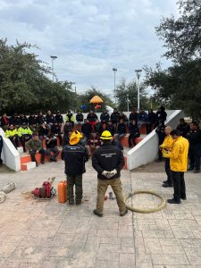 Cadereyta N.L.- Hoy 5 de febrero, es el tercer día de capacitaciones. Los participantes de la capacitación “Incendios Forestales como Primer Respondiente” están realizando pruebas prácticas en el campo de los coreanos, poniendo en práctica sus habilidades y conocimientos adquiridos.