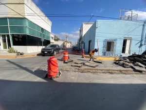 Continúan trabajos de introducción de tubería nueva en el centro de Cadereyta