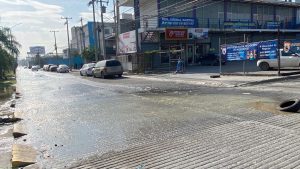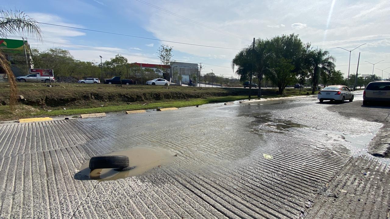Algunos comerciantes cercanos reportaron los hechos, pero nadie ha acudido al lugar para reparar la fuga o para abanderar el sitio, ya que si es un riesgo para los miles de conductores que transitan por el lugar.
