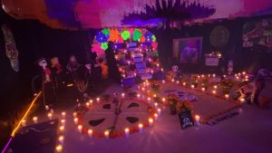 El director del plantel, profesor Eugenio Rodríguez, acompañado de los diputados Mario Salinas y Rocío Montalvo e invitados presenciaron varios números musicales y recorrieron el ingenioso altar entre luces y olor a incienso.