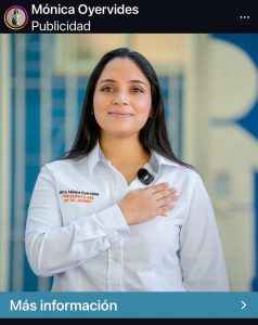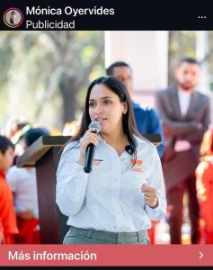 Juárez, N.L.- En lo que sería un muy claro acto anticipado de campaña la imagen de Mónica Oyervides, inunda las redes sociales en diferentes eventos, muy aparte de la enorme plantilla de medios que la publicitan, pagados con recursos municipales.