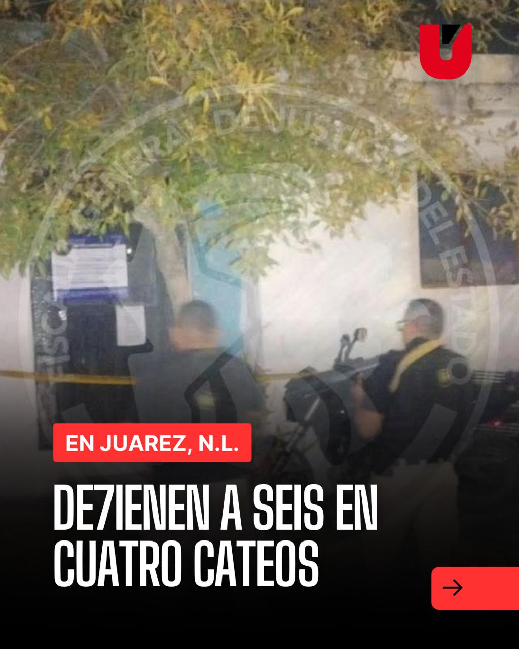 Juárez, N.L.- Seis personas fueron de7enidas después que la Fiscalía estatal realizara cuatro cateos, en igual número de colonias en Juárez la noche del martes.