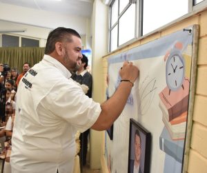 El alcalde Carlos Rodríguez “El Cuate” estuvo presente en el evento y recordó con orgullo una frase del padre del senador: “Provengo de la cultura del esfuerzo y no del privilegio”. Rodríguez Gómez anunció que además de la donación, se gestionó la construcción de una cancha de césped artificial para la escuela.