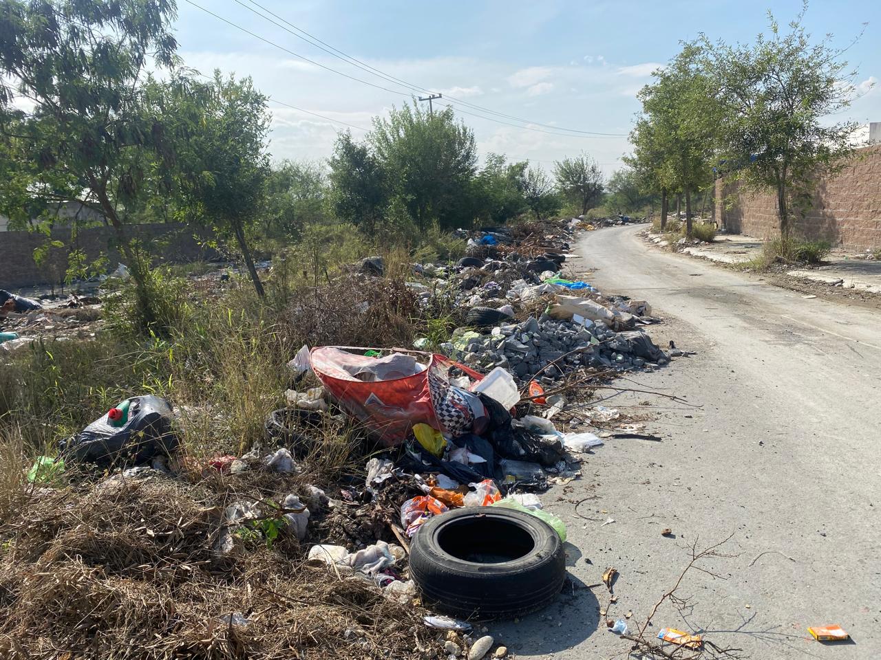 Juárez, N.L.- La calle Elizama de la colonia Mirador de San Antonio, desde los accesos 9 y 10, se convirtieron en el basurero más grande de Juárez, sin que nadie lo impida.