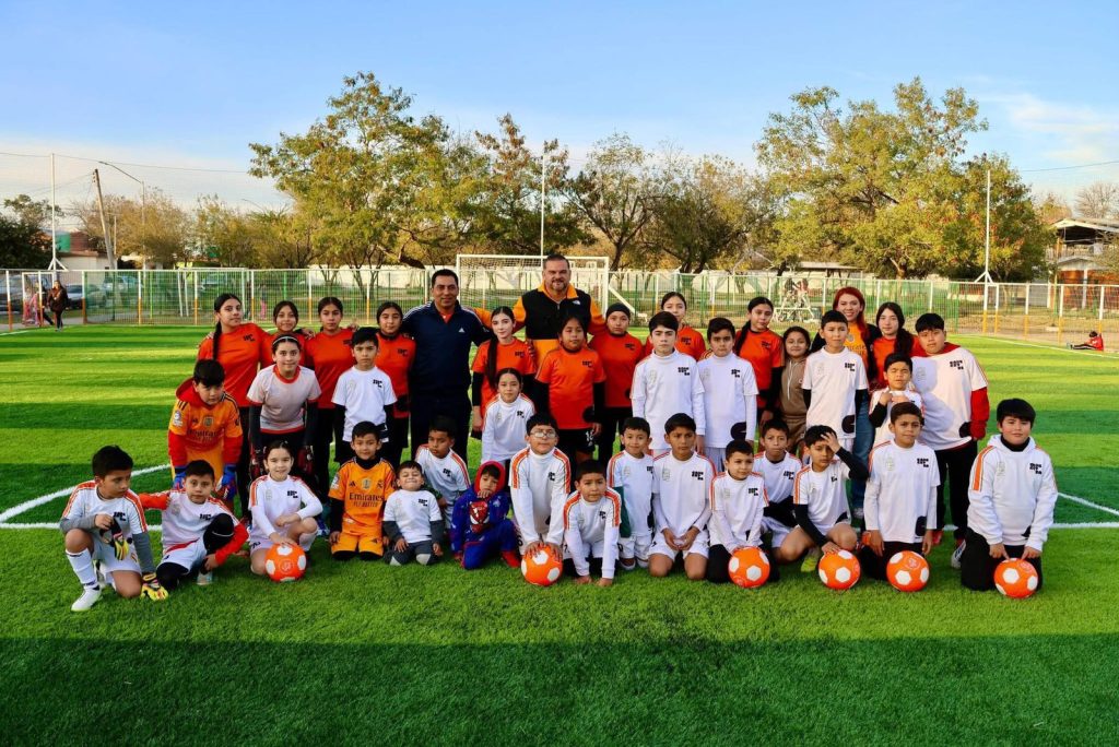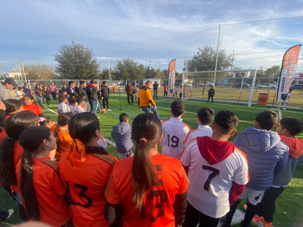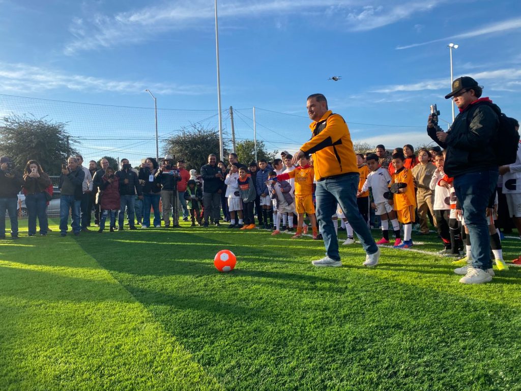 Entrega “El Cuate” cancha de fut -7 en colonia Salinas de Gortari