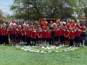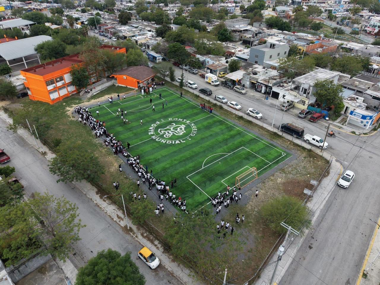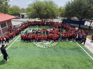 Cadereyta Jiménez, N.L. — Como parte del programa de infraestructura deportiva, autoridades municipales entregaron dos nuevas canchas de pasto sintético en la colonia Bella Vista.