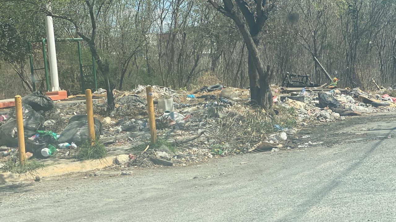 Juárez, N.L.- Montañas de basura y escombro, animales muer7os y hasta muebles viejos se amontonan en uno de los llamados espacios de unidad”, en la colonia Real de San José.