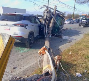 El impacto fue tan fuerte que derribó un poste de electricidad, que cayó sobre uno de los vehículos. Una cuadrilla de la Comisión Federal de Electricidad (CFE) se encuentra en el lugar para atender el incidente.