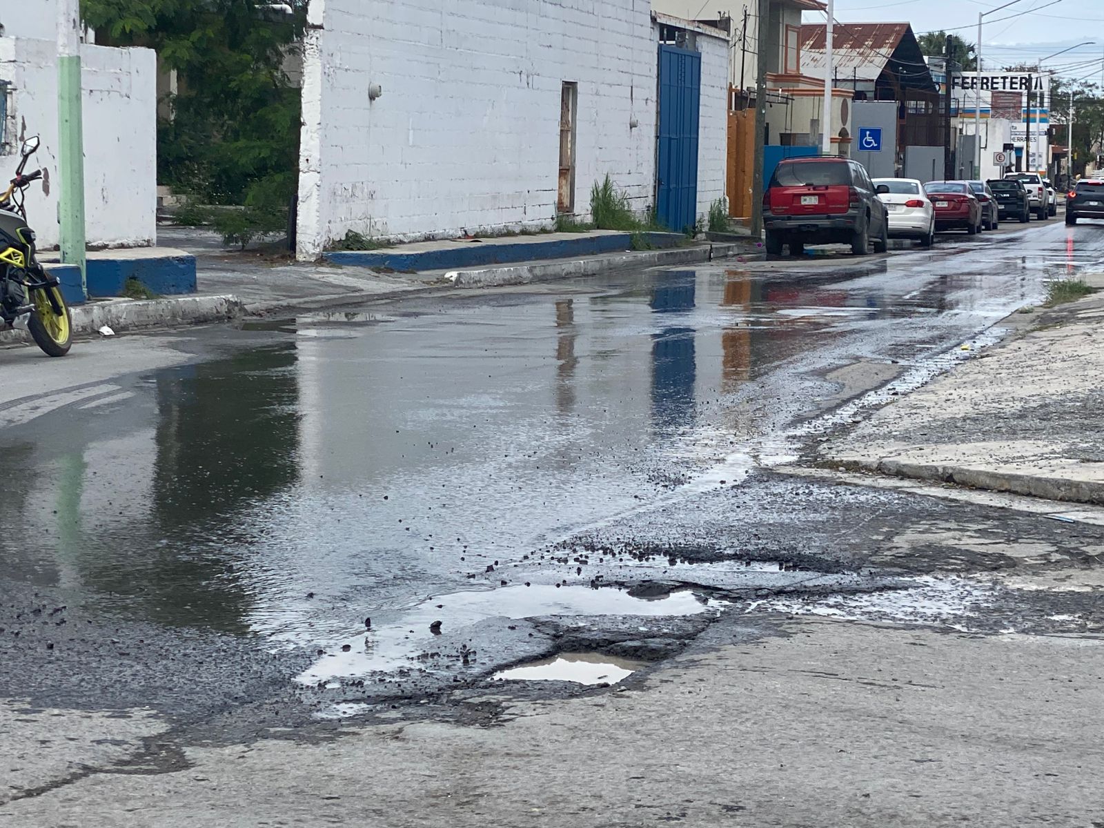 Según informes, la fuga se debió a una ruptura de un tubo en el interior de la carpeta asfáltica, lo que provocó que la carpeta se cuarteara y se desprendiera de la calle.