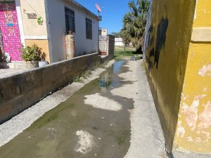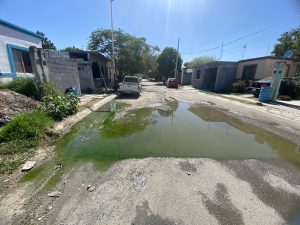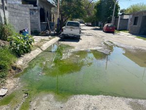 Cadereyta N.L.- Los vecinos de la colonia Jardines de Cadereyta están viviendo un calvario debido a una fuga de agua y drenaje en la intersección de las calles Florencia y Violeta, que ya tiene más de una semana sin ser atendida.