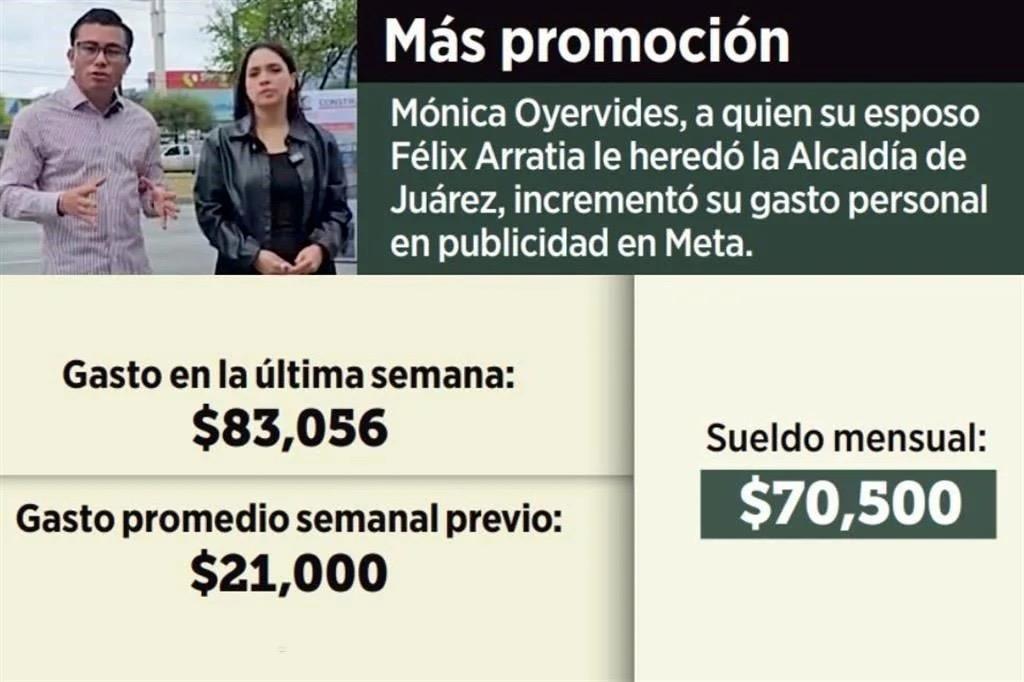 De continuar el gasto en ese rubro, de un gasto aproximado de 332,200 mensuales, la nueva alcaldesa Mónica Oyervides de Arratia, gastaría en un año la cantidad de 3,989,400 pesos, sólo en Meta, sin contar los pagos a los influencers, páginas de Facebook, medios escritos y digitales, lo cual elevaría una suma estratosférica, tomando en cuenta las carencias del municipio.