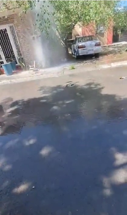Cadereyta N.L.- Una fuga de agua potable se registra desde el domingo a las 7 pm en la calle Fornio, entre Iberis y Gazania, en la colonia Valle del Roble, sector Sabino. La fuga continúa, inundando las calles y desperdiciando el vital líquido. Según vecinos, el chorro de agua es tan fuerte que alcanza hasta el tercer piso de las casas cercanas.