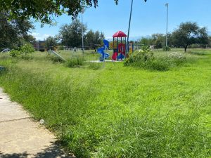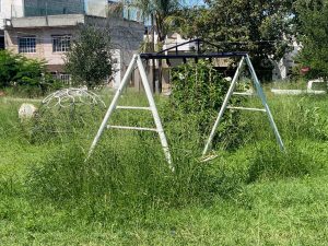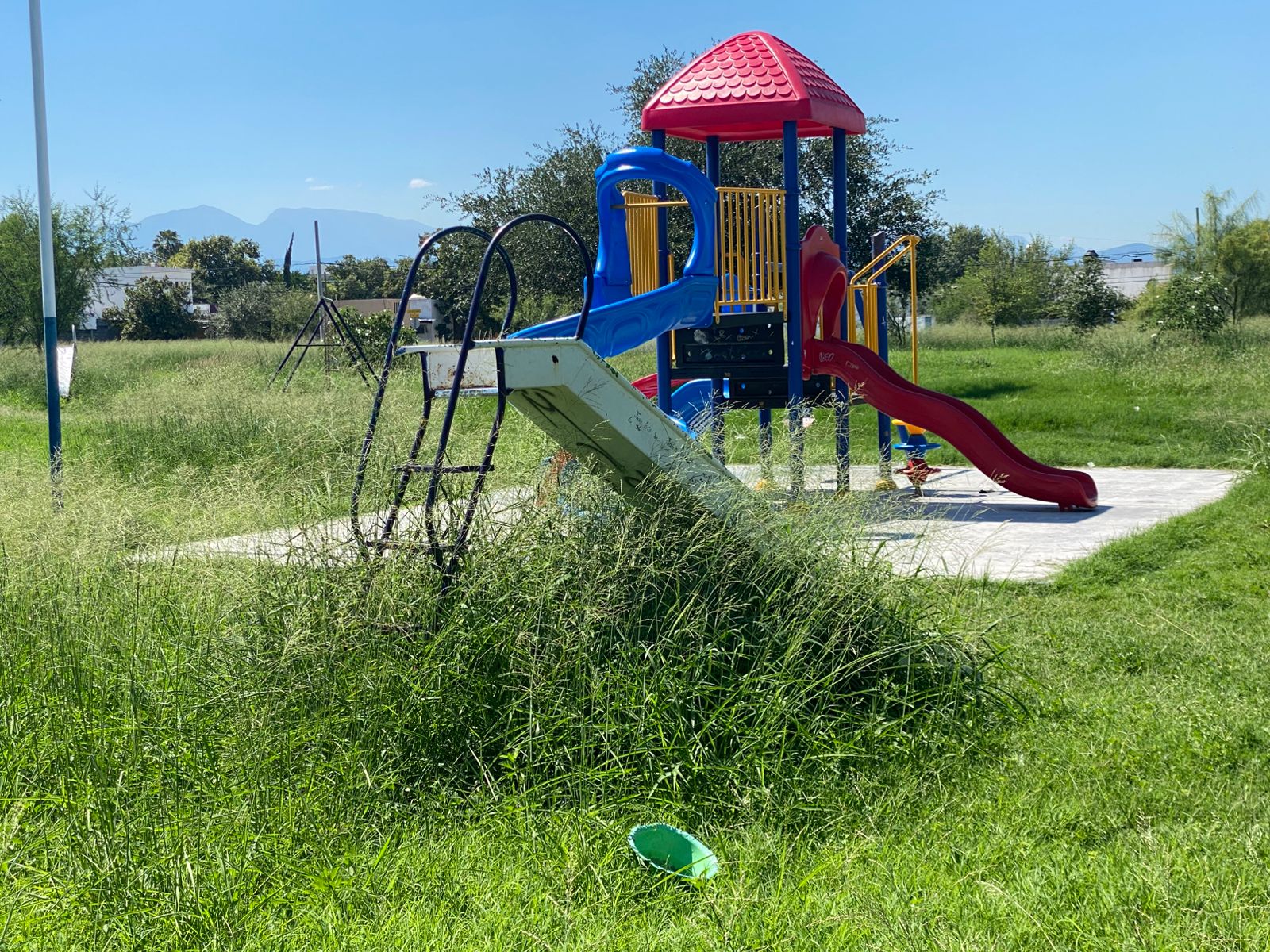 Cadereyta N.L.- Los vecinos de la colonia Santa Lucía Segundo Sector en Cadereyta han reportado la falta de mantenimiento en la plaza ubicada en la calle Santa Cecilia, en el cruce con Juan García Sandoval. Según mencionan, la maleza ha crecido de manera excesiva, lo que ha generado problemas para los residentes, especialmente para aquellos que desean llevar a sus niños al parque.