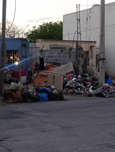 Juárez, N.L.- Una mujer que se dedica a acumular basura en la calle Rosa Blanca, en la colonia Villas de San Juan, ya tiene hartos a los vecinos, debido a la suciedad y basura que ya llega hasta las calles.