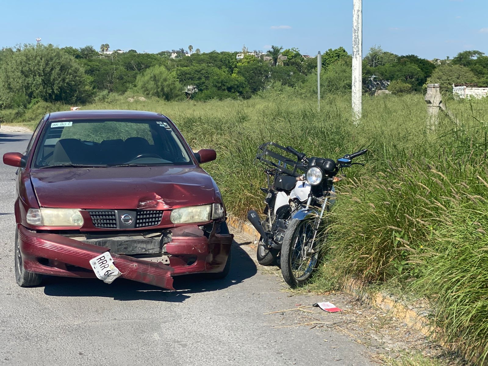 Cadereyta N.L.- Un motociclista resultó lesionado después de impactar con un vehículo en el cruce entre las calles Gonzalitos e Hidalgo, antes de llegar a la privada Santa María. Elementos de Protección Civil y Emergencias acudieron al lugar para brindar atención médica, mientras que elementos de Tránsito se encargaron de deslindar responsabilidades.