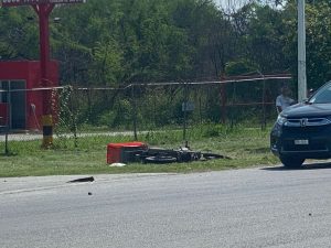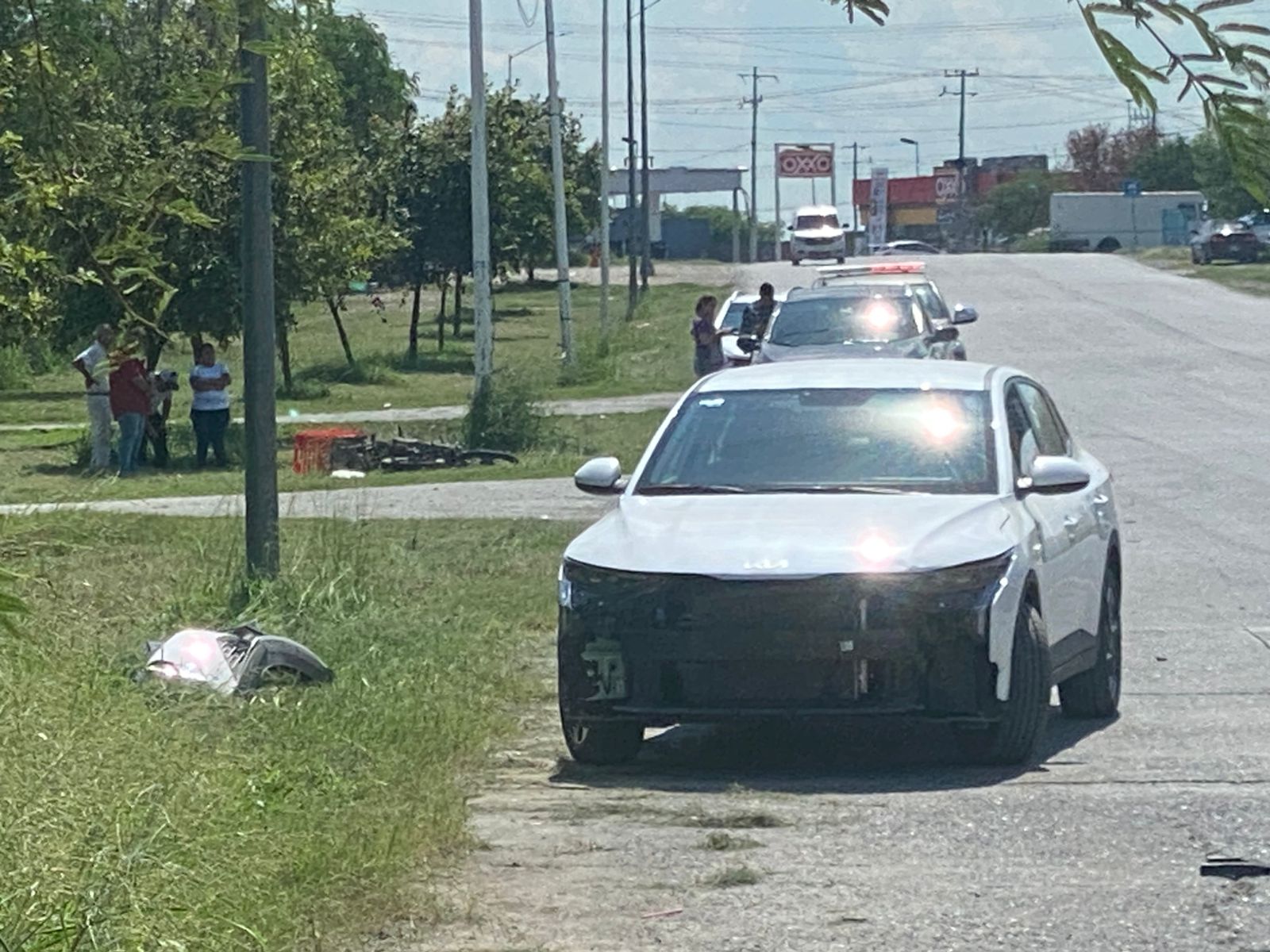 Cadereyta N.L.- Este lunes por la mañana, un motociclista fue impactado por una camioneta color blanco, marca Kia, sobre la carretera Chihuahuita, a la altura de la colonia Salinas de Gortari, en el municipio de Cadereyta.