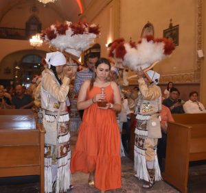 La peregrinación, que partió de la parroquia, contó con la participación de trabajadores municipales y la Banda Municipal de Música, así como la presentación de los matachines “Danza San Juan Bautista”. Al final de la peregrinación, se realizó una misa para entregar ofrendas por parte de los burócratas de Cadereyta.