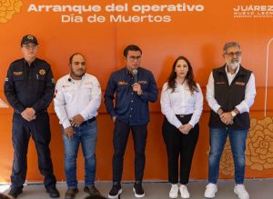 Juárez, Nuevo León, a 31 de octubre de 2025.- Ante la gran afluencia de asistentes que se espera visiten a sus fieles difuntos desde este viernes 31 de octubre y durante los días 1 y 2 de noviembre, el Gobierno Municipal de Juárez, encabezado por el alcalde Félix Arratia Cruz, puso en marcha el Operativo Día de Muertos 2025, con el objetivo de salvaguardar la integridad de los asistentes durante esta tradicional conmemoración.