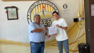 Al final del evento, el rector del CES, maestro Martín Reyes, entregó un reconocimiento al joven conferencista por su brillante charla con sus alumnos.