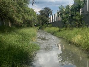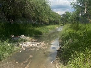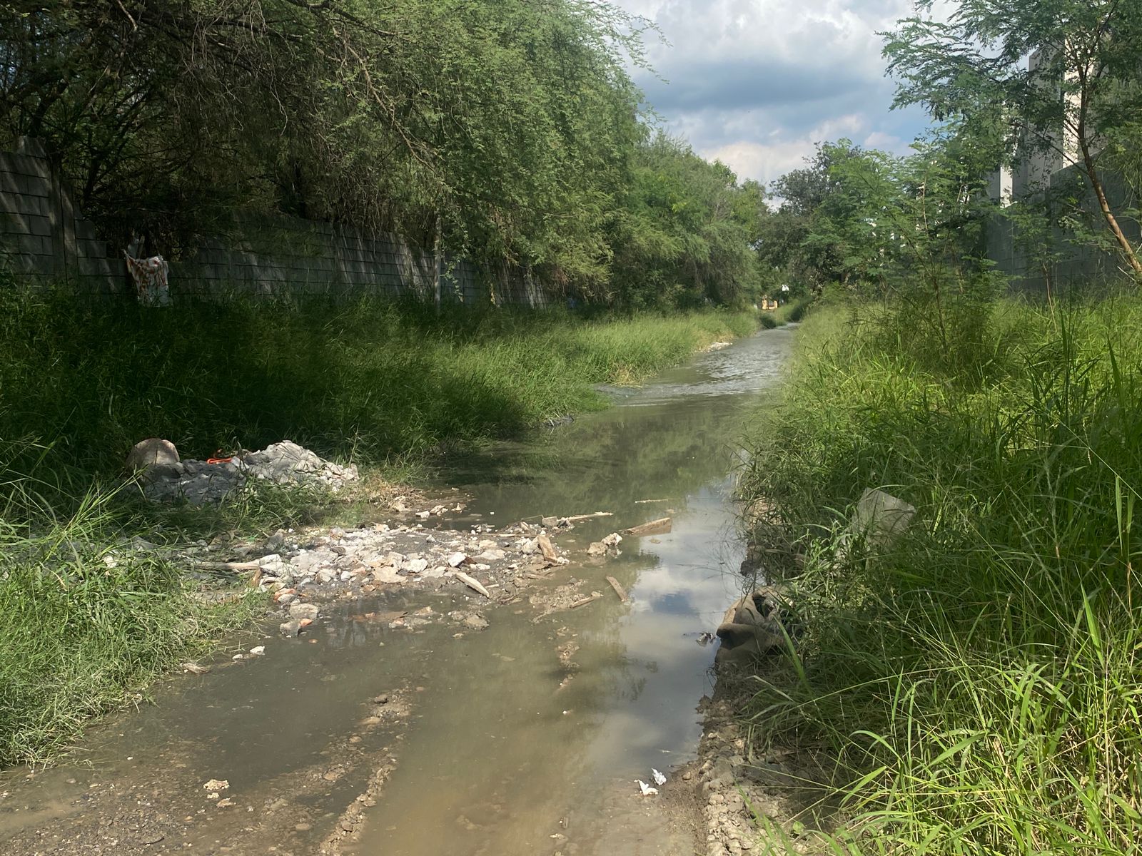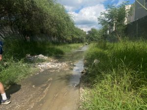 El lugar que se encuentra ubicado entre el Libramiento Julio Cisneros y Haciendas de Villa Juárez, se encontraba totalmente anegado de pestilentes aguas que soportan Lodo el día y la noches los vecinos del fraccionamiento Valterra, que son los más cercanos al lugar de la fuga del drenaje.
