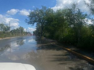Las aguas llenaron también el Libramiento y la calle Ruperto Garza.