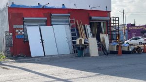 Juárez, N.L.- Un negocio de puertas de madera y de casas para mascotas, fue reportada por los vecinos, ya que obstruye el paso por la banqueta, que es para los peatones.