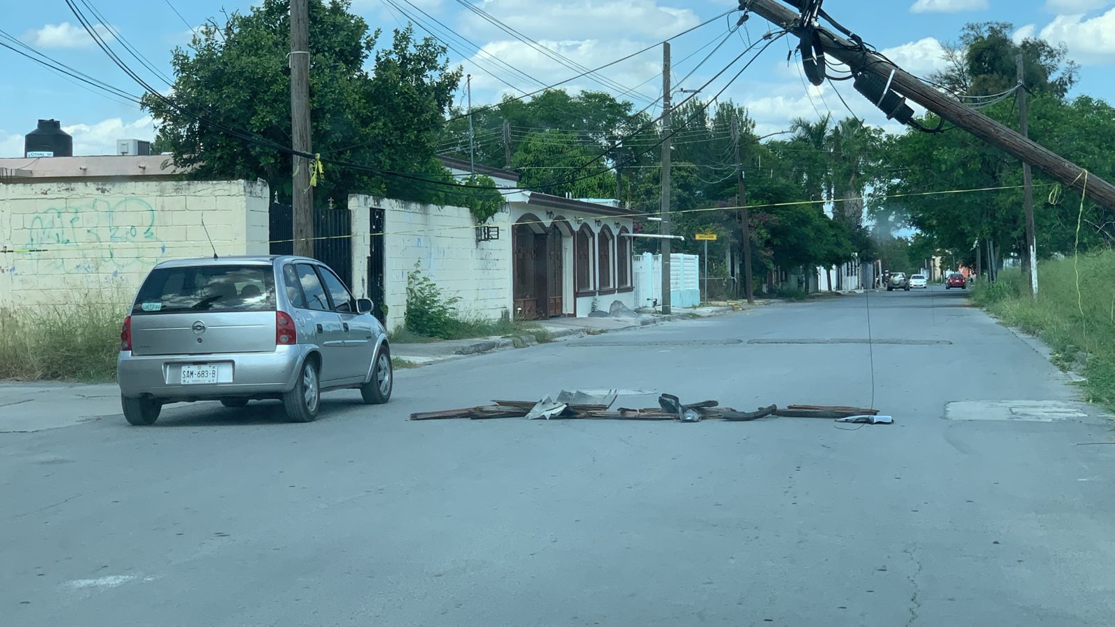 Cadereyta N.L.- Vecinos del sector reportaron un poste a punto de caer en la colonia López Mateos, específicamente en el cruce de la calle López Mateos con Nicolás Bravo. Un buen samaritano colocó señalamientos preventivos para evitar accidentes, ya que el poste podría caer sobre personas o vehículos.