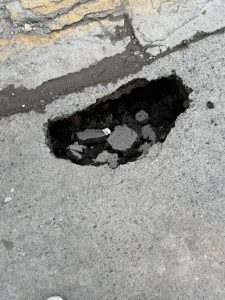 Juárez, N.L.- Un enorme hoyo en la avenida Coahuila y Juan Zuazua en la colonia Infonavit La Reforma, pone en riesgo a los conductores y peatones, sin que haya autoridad que resuelva la problemática.