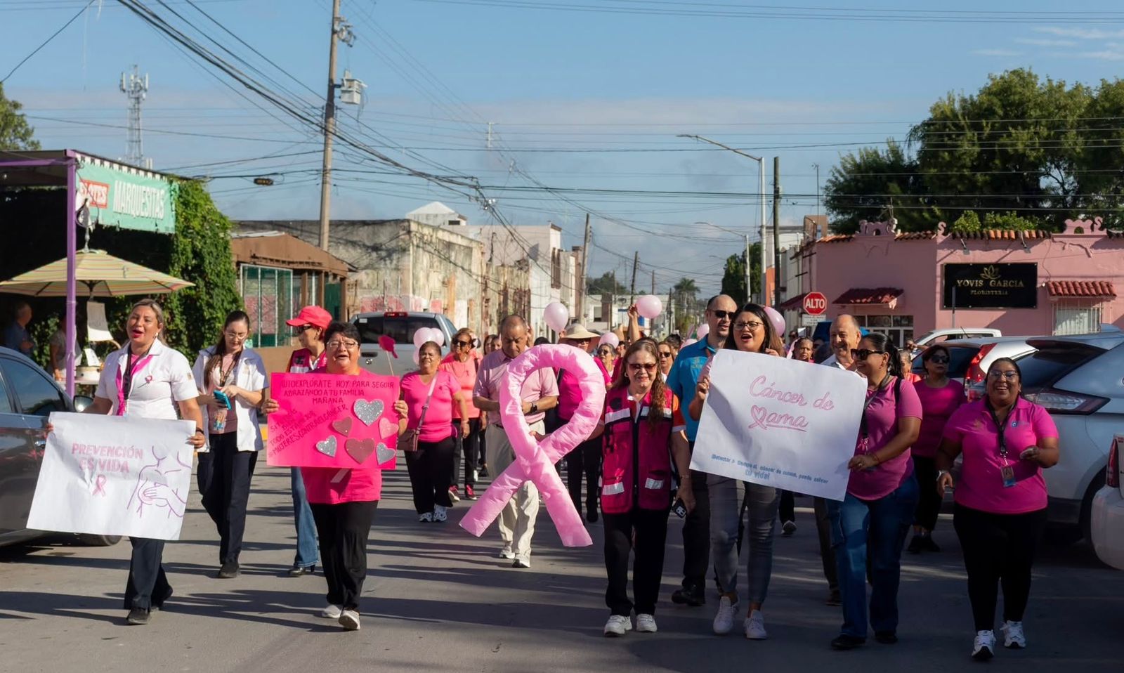Cadereyta N.L.- Personal del DIF Cadereyta, la Casa de Día y Servicios de Salud del Estado, realizaron un recorrido conjunto el domingo 19 de octubre por la mañana en el centro de Cadereyta para reforzar el mensaje de prevención y detección oportuna del cáncer de mama.