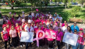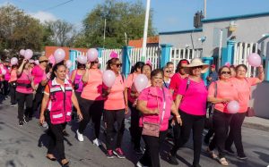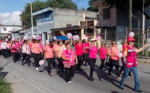 Cadereyta N.L.- Personal del DIF Cadereyta, la Casa de Día y Servicios de Salud del Estado, realizaron un recorrido conjunto el domingo 19 de octubre por la mañana en el centro de Cadereyta para reforzar el mensaje de prevención y detección oportuna del cáncer de mama.