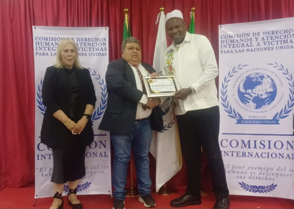 El acto fue en un salón de la ciudad de Monterrey y fue entregado por la Comisión Interna de Derechos Humanos en Atención Integral a Víctimas para las Naciones Unidas y ante en manos del Príncipe de Bantú de Camerún, Dr. Jean Louis Binga y de la Vice-Presidenta Dra. Leticia de la Rosa Cuevas.
